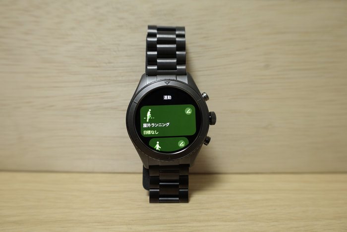 また、画面は「常時表示(ずっと時計の針を表示しっぱなしにする機能)」が使えます。腕を大げさに振らなくても、チラッと目を向けるだけで時間がわかるので、普通の時計と同じ感覚で使えますよ。